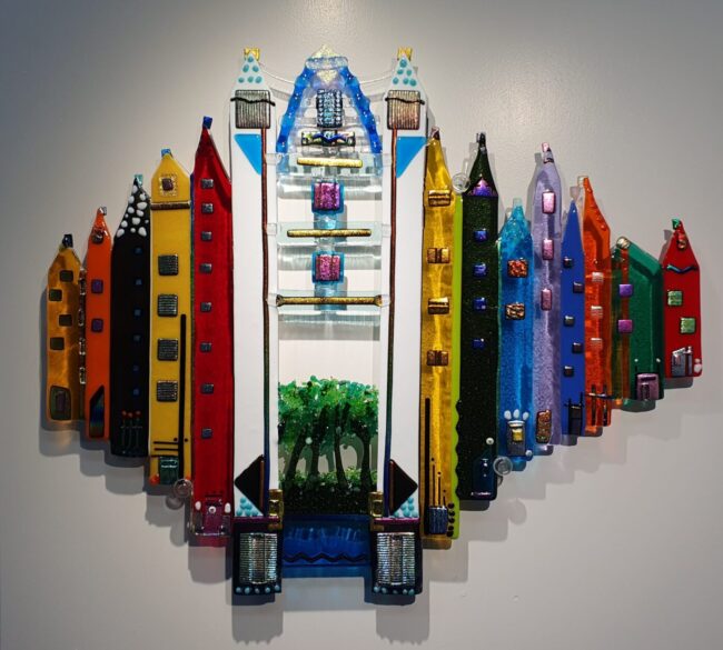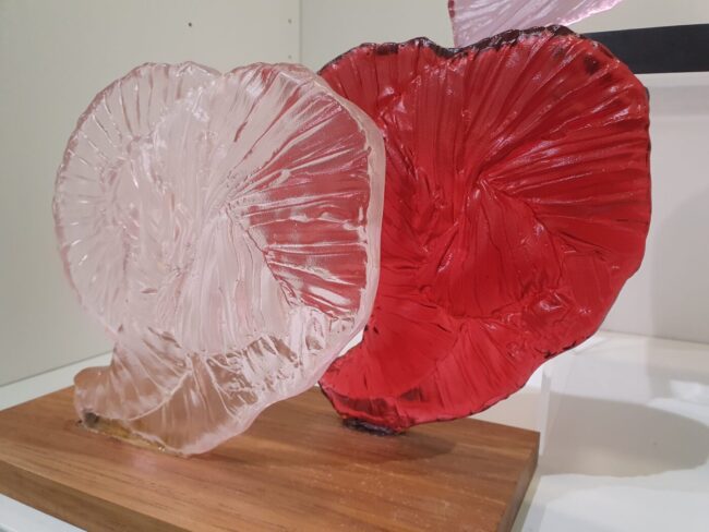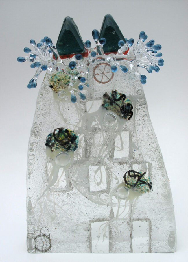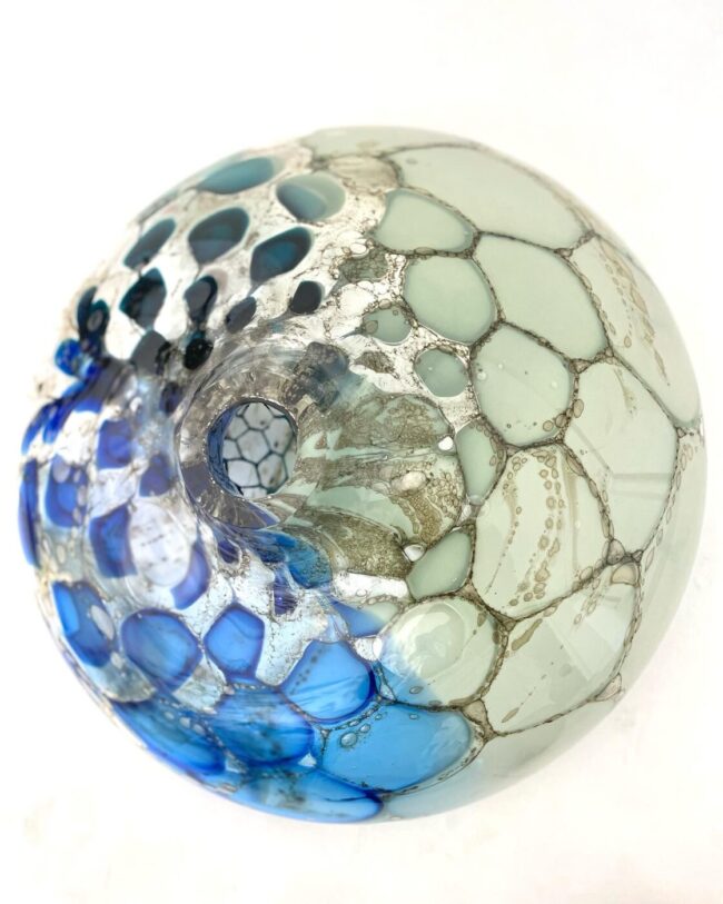 Maurice La Rooy, geblazen glas De werken zijn geblazen glas en na het overzetten naar de pontil(het overpakken met een gesloten pijp om de opening van het object verder te bewerken) bewerkt met “inside sculpting tools”. Inside sculpting tools zijn kogellagers en andere vormen die gelast zijn op een metalen staaf waarmee glas van binnenuit…